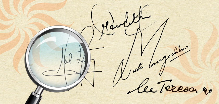 It is said that while lettering a sentence, we leave on the pages our information and belief. But whenever we sign, we represent our name, our self, and our public character on the page.